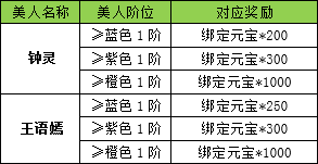l 活动内容:活动期间内,拥有钟灵和王语嫣,且提升至目标品阶则可领取奖励。