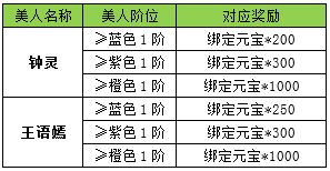 活动奖励:满足要求的玩家请在开服礼->国色天香界面领取奖励!