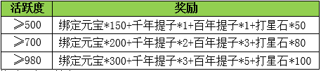 活动期间内,玩家累计活跃度符合要求,将获得绑定奖励。
