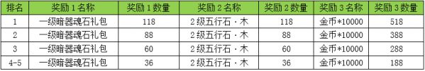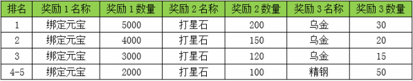 截至11月5日23:59,统计本服等级排行前5名玩家将获得对应奖励。