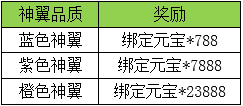 活动内容:活动期间内,神翼达到特定等级,将获得额外绑定元宝。