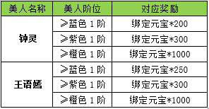 l 活动内容:活动期间内,拥有钟灵和王语嫣,且提升至目标品阶则可领取奖励。
