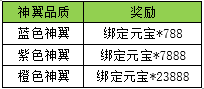 l 活动内容:活动期间内,神翼达到特定等级,将获得额外绑定元宝。
