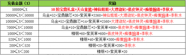 活动期间内,玩家累计充值金额达到特定要求,即可获得对应奖励。