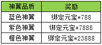 l 活动内容:活动期间内,神翼达到特定等级,将获得额外绑定元宝。