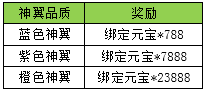 l 活动内容:活动期间内,神翼达到特定等级,将获得额外绑定元宝。