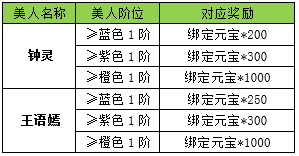 l 活动内容:活动期间内,拥有钟灵和王语嫣,且提升至目标品阶则可领取奖励。