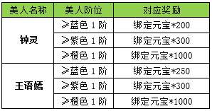 活动内容:活动期间内,拥有钟灵和王语嫣,且提升至目标品阶则可领取奖励。