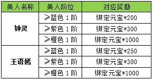 活动内容:活动期间内,拥有钟灵和王语嫣,且提升至目标品阶则可领取奖励。