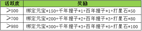 活动期间内,玩家累计活跃度符合要求,将获得绑定奖励。