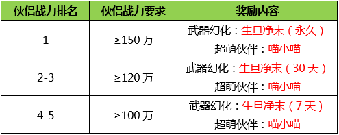 侠侣战力指夫妻双方在活动期间内最后一次下线时的实际战力和。