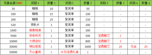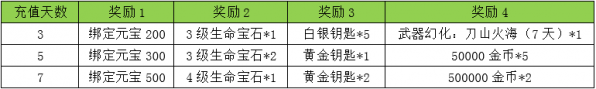 活动内容:活动期间内玩家充值金额满足对应档位,将获得对应奖励。