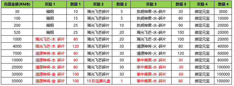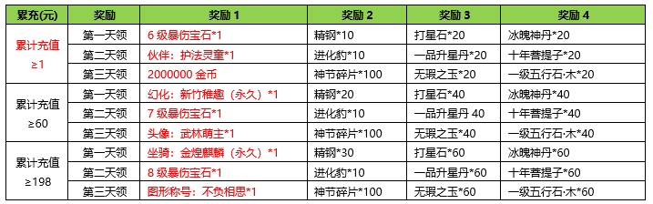 活动内容:玩家可以通过较低的元宝获得更高价值的成长道具和强化道具。