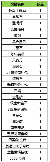 | 7 | 累计登录20天 | 一品升星丹 | 20 |