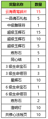 | 3 | 累计登录16天 | 一品升星丹 | 20 |