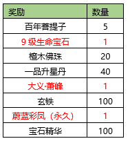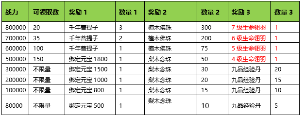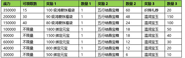 活动期间内玩家拥有的五行珠战力达到要求,可以获得对应的奖励。