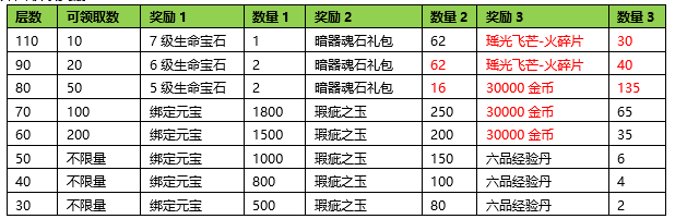 活动期间内玩家通关藏经阁层数满足要求可获得对应奖励。