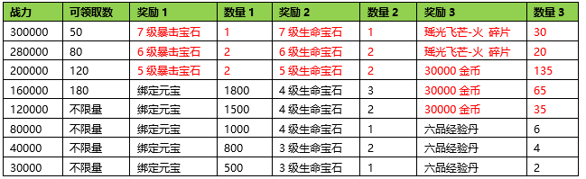 活动期间内玩家拥有的宝石战力达到要求,可以获得对应的奖励。