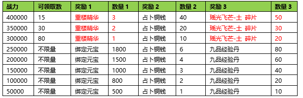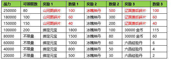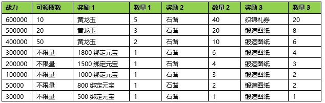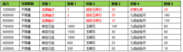 活动期间内玩家拥有的宝鼎战力达到要求,可以获得对应的奖励。