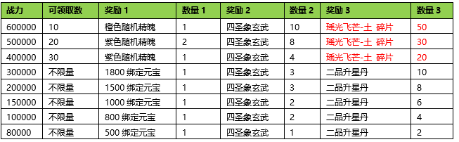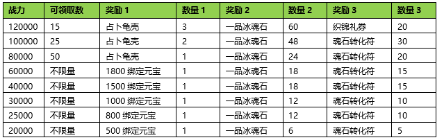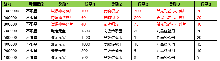 活动期间内玩家拥有的武魂战力达到要求,可以获得对应的奖励。