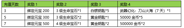 | 4 | 累计登录3天 | 武器抽奖券 | 5 |