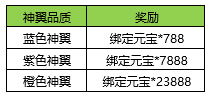 活动内容:活动期间内,神翼达到特定等级,将获得额外绑定元宝。