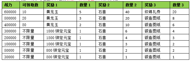 活动期间内玩家拥有的镇器战力达到要求,可以获得对应的奖励。