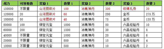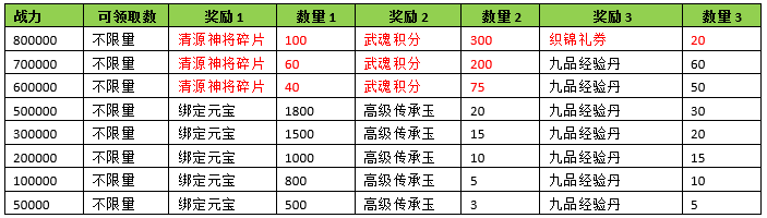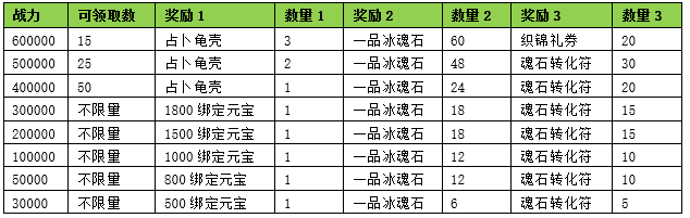 活动期间内玩家拥有的武魂战力达到要求,可以获得对应的奖励。