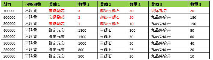 活动期间内玩家拥有的宝鼎战力达到要求,可以获得对应的奖励。