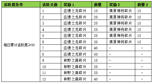 1. 活动期间内玩家活跃条件达到指定要求可以领取清源神将碎片。