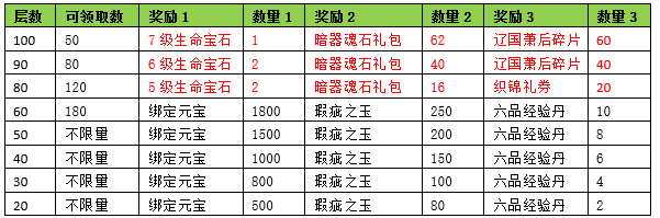 活动期间内玩家通关藏经阁层数满足要求可获得对应奖励。
