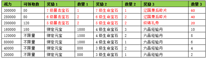 活动期间内玩家拥有的宝石战力达到要求,可以获得对应的奖励。