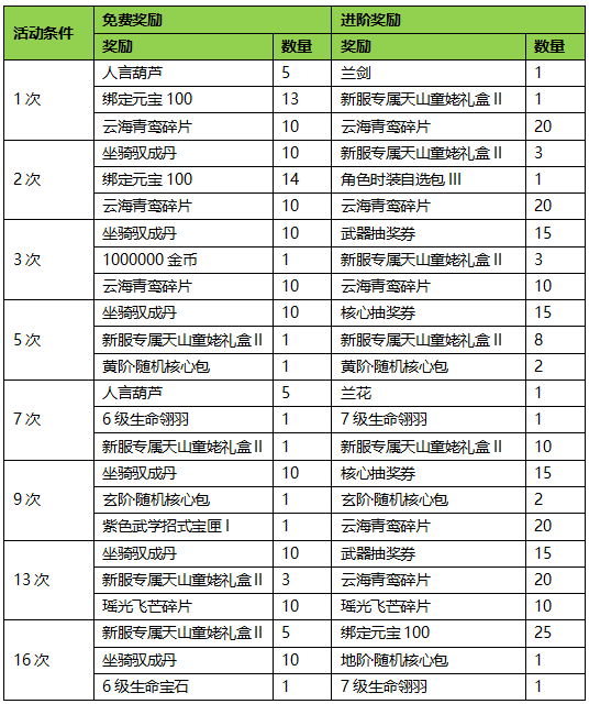 活动期间内,参与天山童姥活动符合条件的玩家可免费领取奖励。消耗198元RMB还可领取进阶好礼。