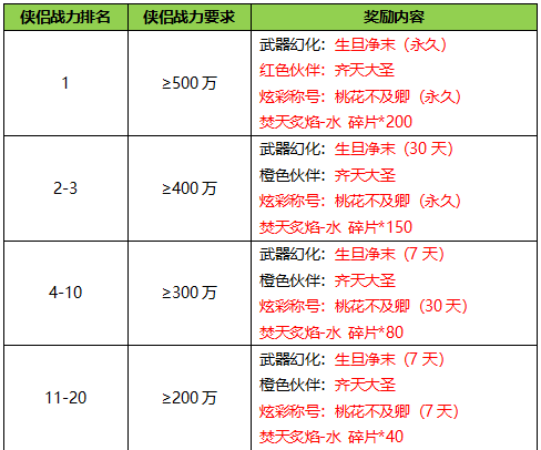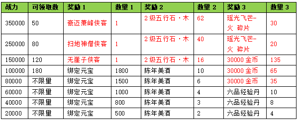 活动期间内玩家拥有的侠客战力达到要求,可以获得对应的奖励。