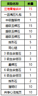 第二阶段奖励:消耗210非绑元宝可以参与抽奖;抽中5次云海青鸾碎片*15的奖励后,该奖励将被锁定无法继续抽取。