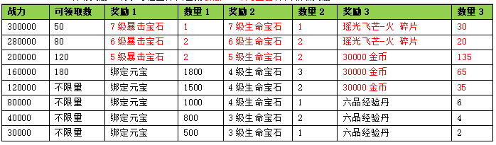 活动期间内玩家拥有的宝石战力达到要求,可以获得对应的奖励。
