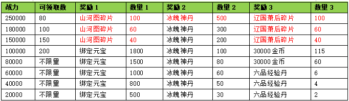 活动期间内玩家拥有的伙伴战力达到要求,可以获得对应的奖励。