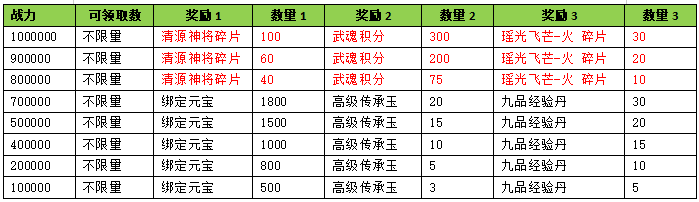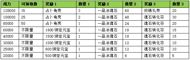 活动期间内玩家拥有的武魂战力达到要求,可以获得对应的奖励。