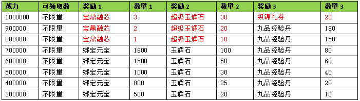 活动期间内玩家拥有的宝鼎战力达到要求,可以获得对应的奖励。
