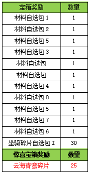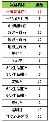 | 198 | 云海青鸾碎片 | 200 | 6级生命翎羽 | 2 |