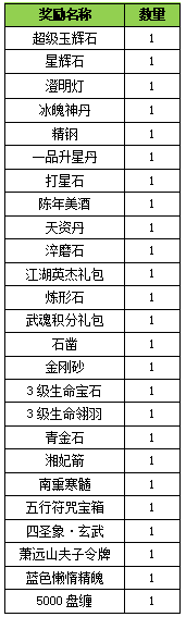 | 30 | 寻侠令 | 40 | 100000金币 | 10 | ||||