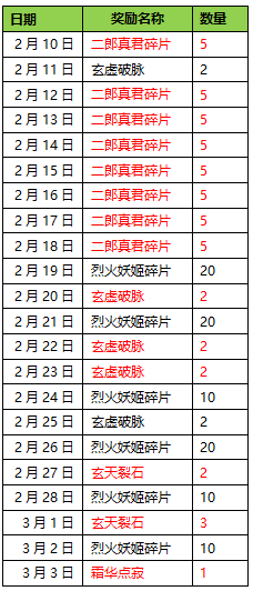 活动时间:2月9日更新后-3月7日