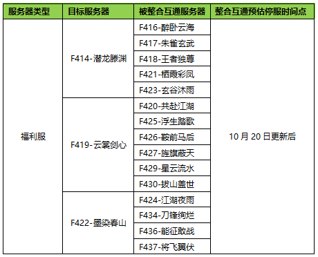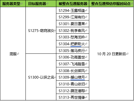 我们计划在2025年10月20日6:00-15:00针对整合互通服停服维护,开服时间根据实际情况提前或顺延,请以实际开服时间为准,请玩家密切关注官方公告。“整合互通”期间所有大跨服停服维护,请诸位英雄女侠相互转告。给您带来的不便,敬请谅解,祝您游戏愉快!