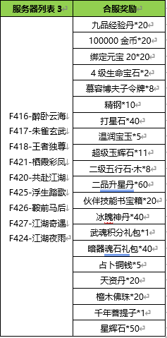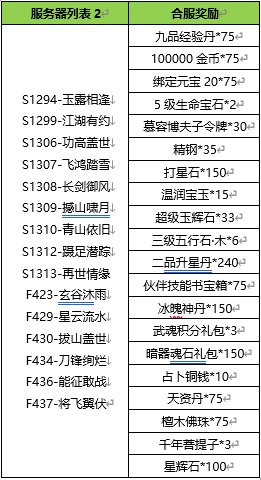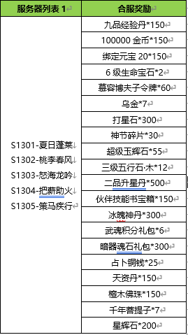补偿范围:以下区服合服前建立账号的角色可以领取本次合服补偿,本次合服补偿奖励: