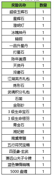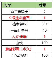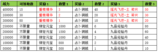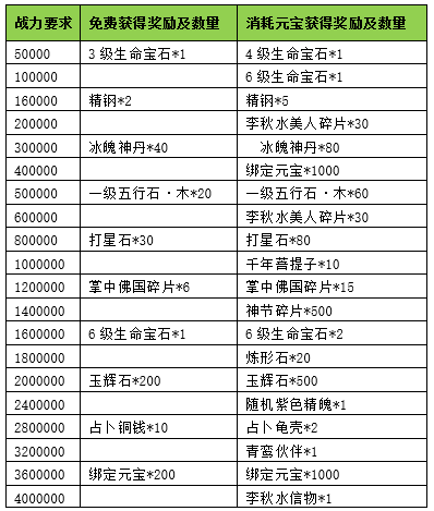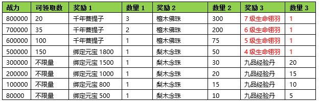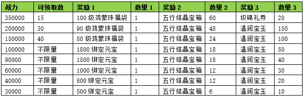 活动期间内玩家拥有的五行珠战力达到要求,可以获得对应的奖励。