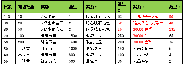 活动期间内玩家通关藏经阁层数满足要求可获得对应奖励。