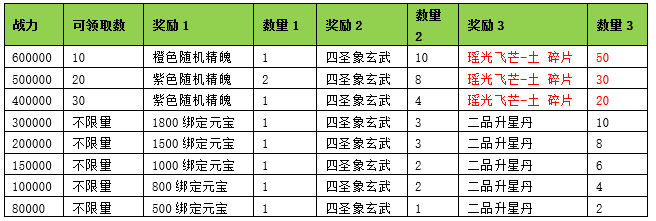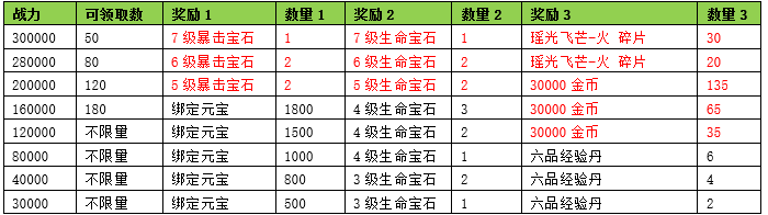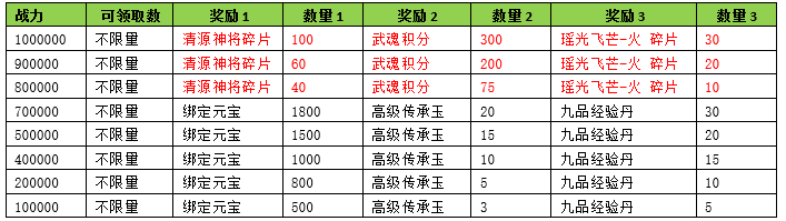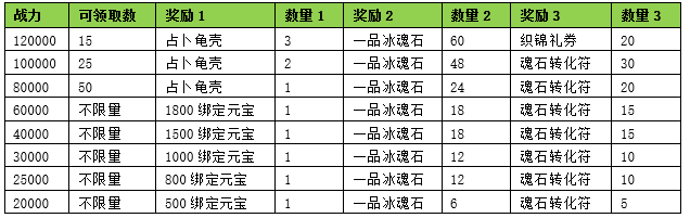 活动期间内玩家拥有的武魂战力达到要求,可以获得对应的奖励。