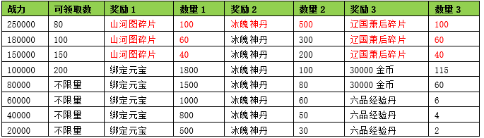 活动期间内玩家拥有的伙伴战力达到要求,可以获得对应的奖励。