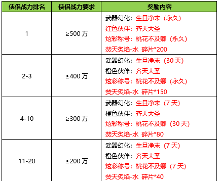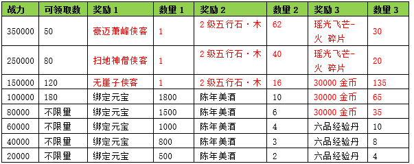 活动期间内玩家拥有的侠客战力达到要求,可以获得对应的奖励。