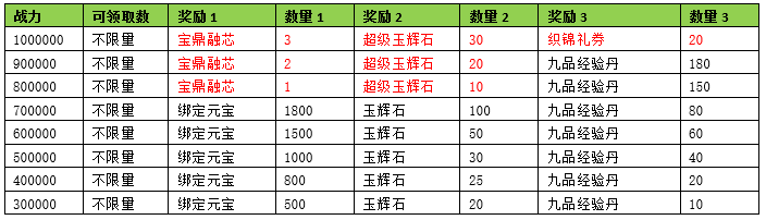 活动期间内玩家拥有的宝鼎战力达到要求,可以获得对应的奖励。